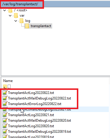 Log-Dateien im Verzeichnis /var/log/transplantact/